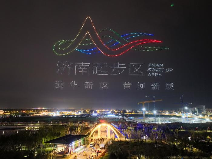 白天逛园区、看演出、品美食,晚上同样精彩。10月1日,地处济南起步区鹊山生态文化区一期项目的鹊华中新园、济南泉韵LIVE及园区景观正式开放。伴随夜幕降临,在园区生态河湾上空,一场大型无人机灯光秀精彩上演。1300架无人机以天为幕,绘就一幅幅精彩画卷,让游客直呼“精彩”。