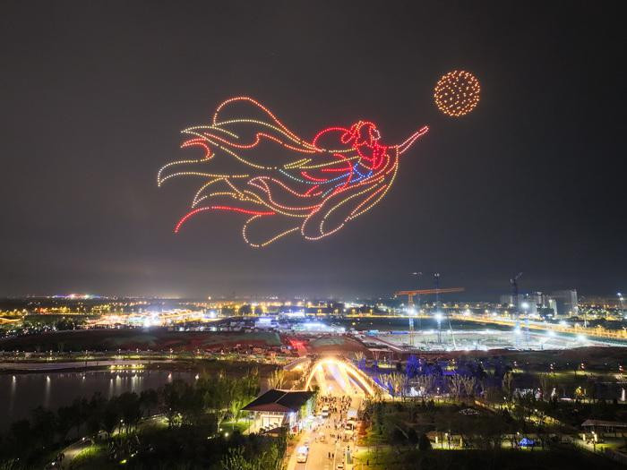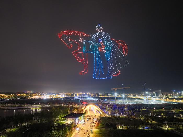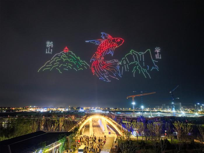 据鹊山生态文化区一期项目运营方先投起新农业发展有限公司相关负责人表示,自10月1日晚开始,无人机表演正式在园区开启,将持续至10月8日,每天20:15—20:40,在生态河湾将上演水幕电影、无人机表演等。